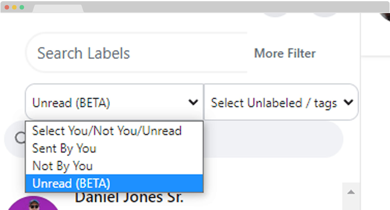 Set the Filter to unread so you never miss another Message. This allows you to quickly find messages that you have yet to read where sales can be hiding. You can also filter by messages sent by you that are awaiting a reply so you can follow up again.