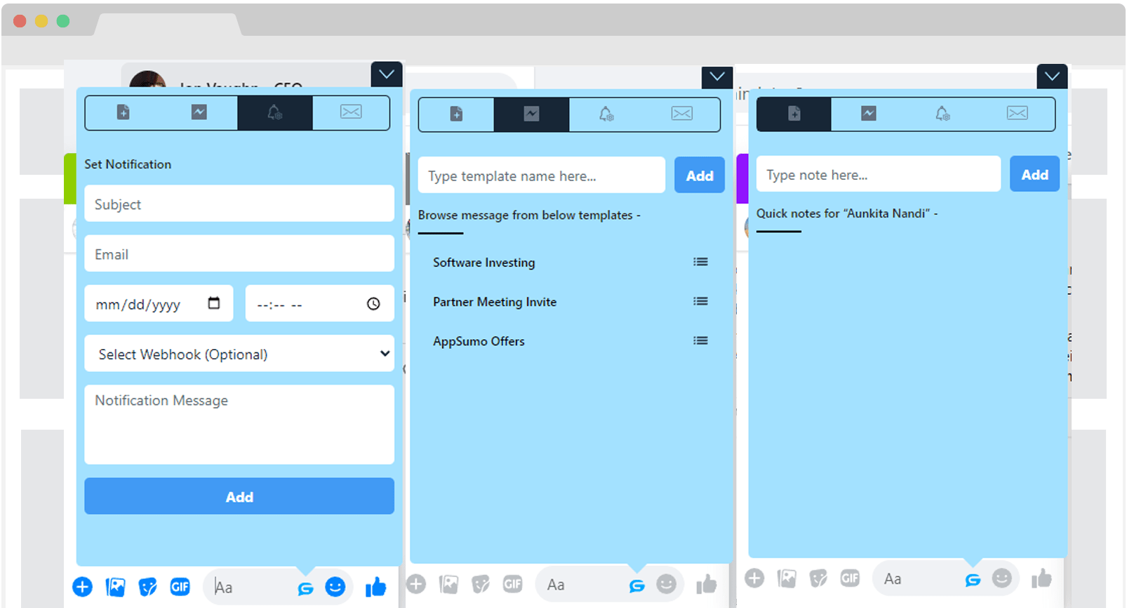 Add Tags to contacts, as many as you want, to better categorize them. Make, edit, and prioritize Notes for each contact. Add email and phone number to FB Contacts! These will show up in quick chat, your message list, and even messenger.com
