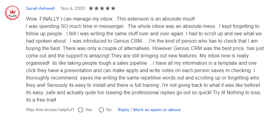 Genius Messenger turns your Messenger into an extremely user-friendly CRM so you keep track of your sales process and never lose a Messenger sale again